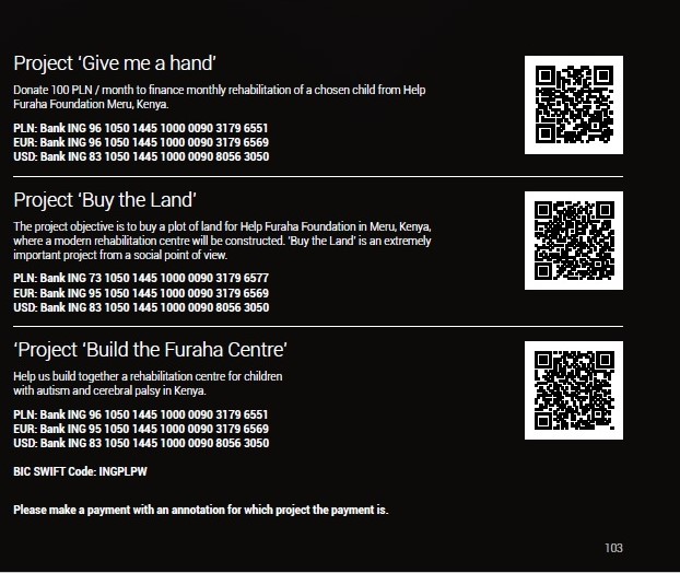 • Elke donor die 100PLN betaalt, ontvangt de Furaha-polsband